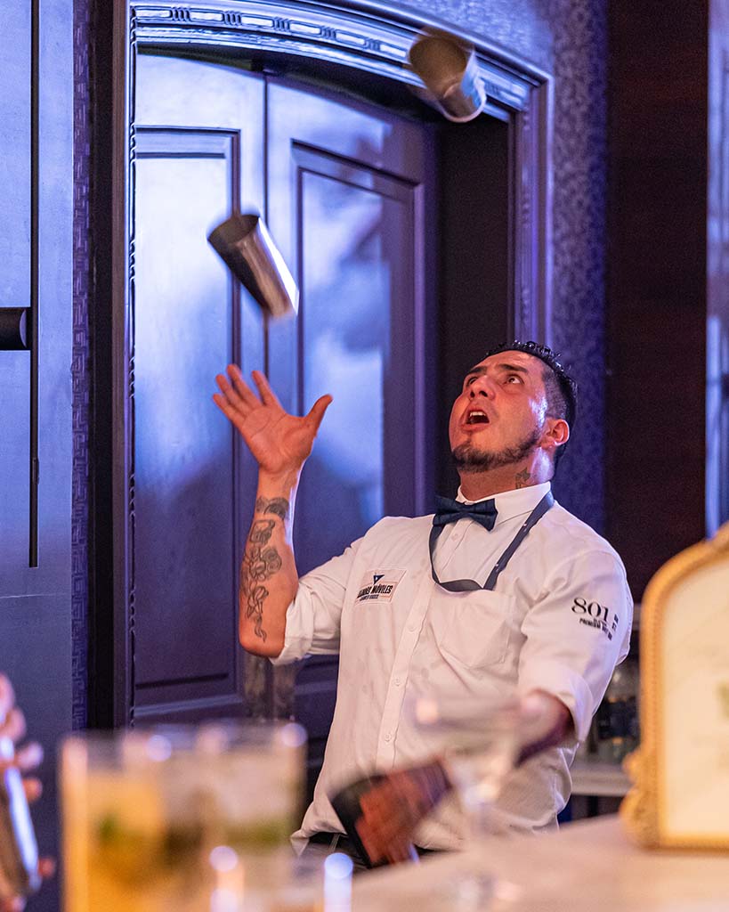 Mixólogos certificados, y flair bartenders que combinan técnica impecable con puro entretenimiento.